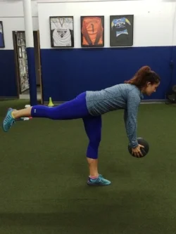 1. Single leg straight leg dead lift - The athlete stands on a straight leg, reaching down to the ground with the opposite arm as the opposite leg remains straight and raises up until parallel to the ground. The keys are to keep the hips level and the exercise should be felt in the back of the leg and hip and not the low back. Perform 3 sets of 10-15 reps.